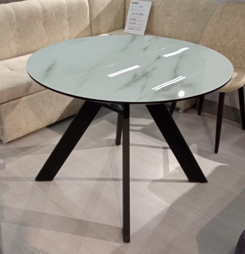 Стол «Альвин» 1000х1000(+320), ф/п 1727766688, мех-м «бабочка», лдсп и кромка черная, каркас черный муар