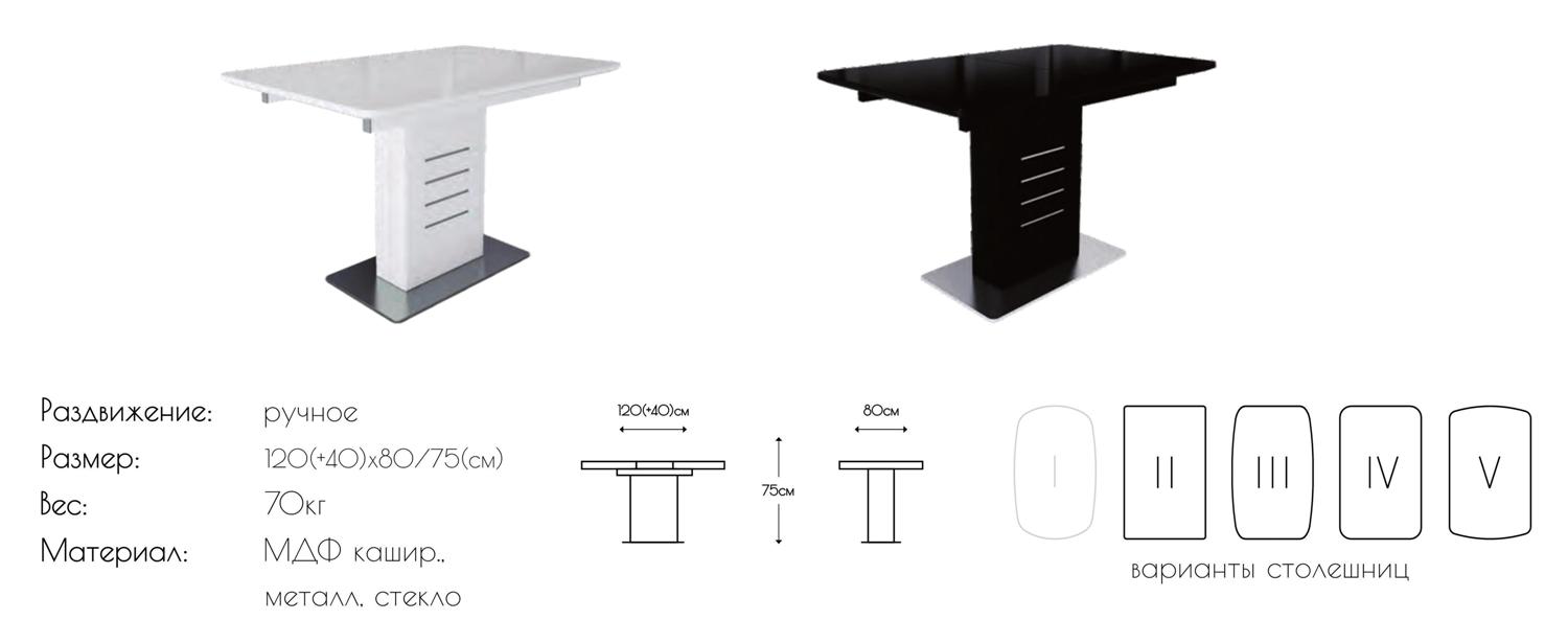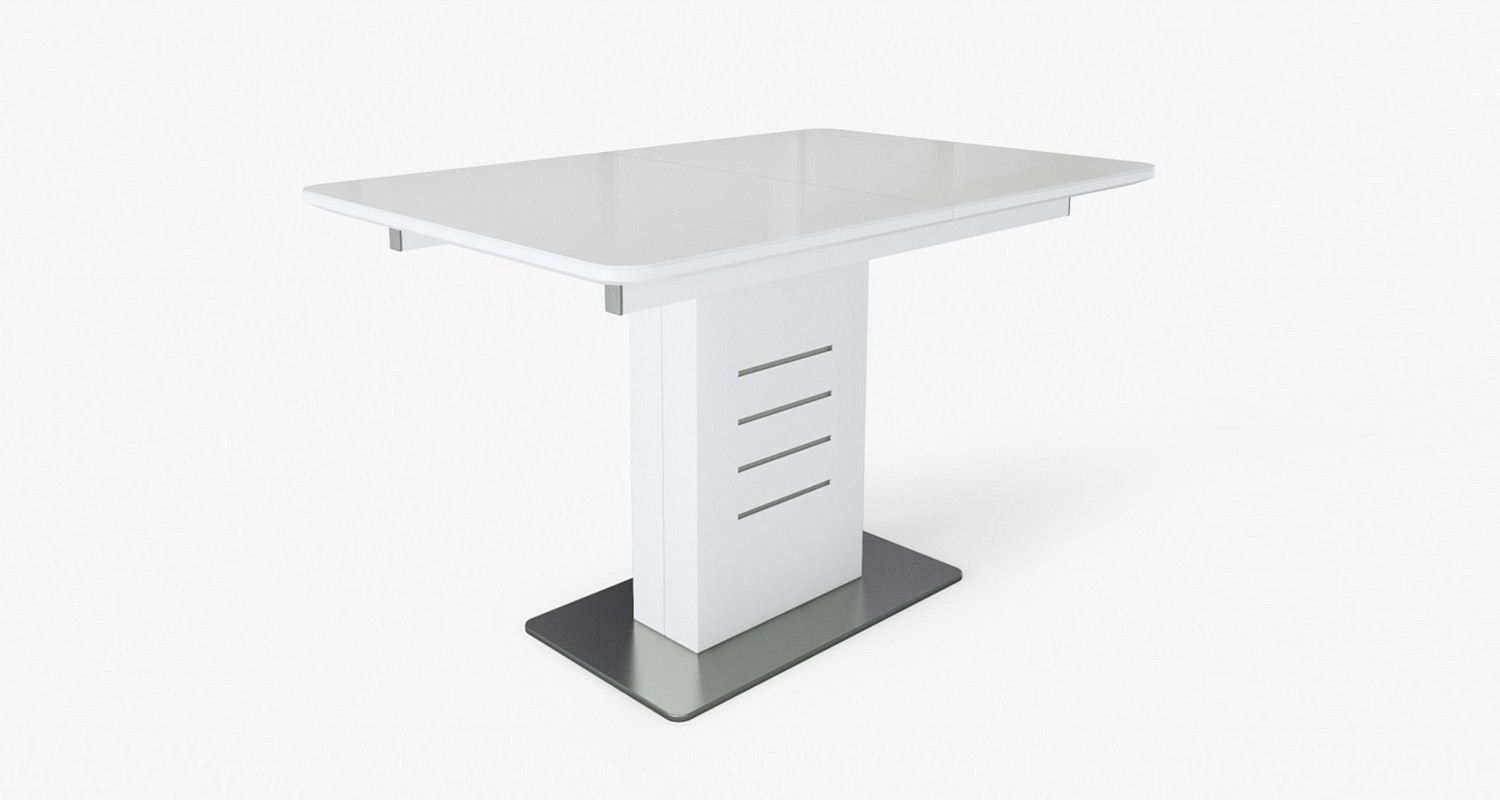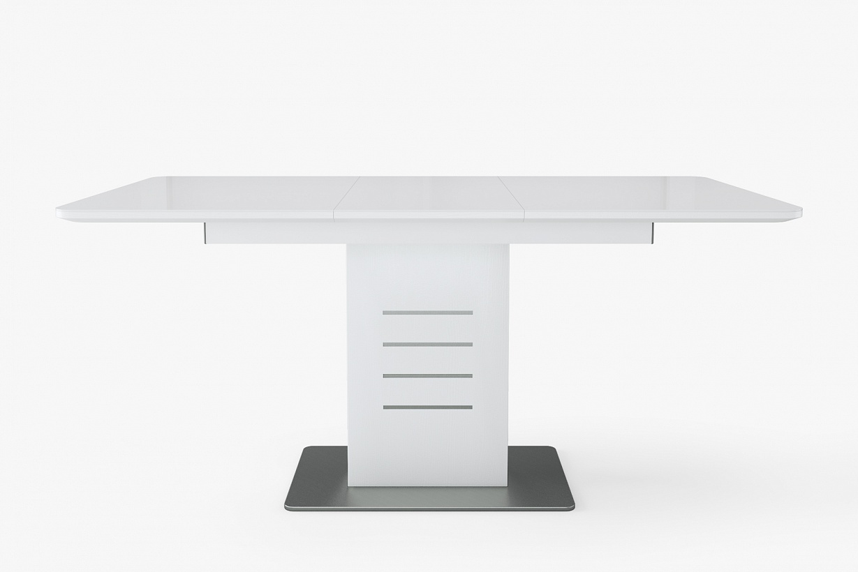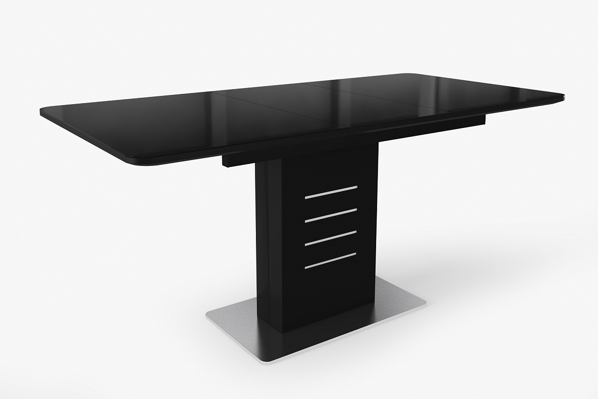Прямоугольная опора из металла, хромированные блестящие полосы придают законченный вид внешнему облику стола.