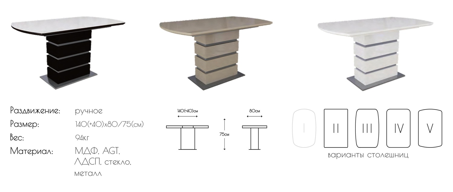 Механизм – ручное, синхронное. Хранение вставки внутри стола.