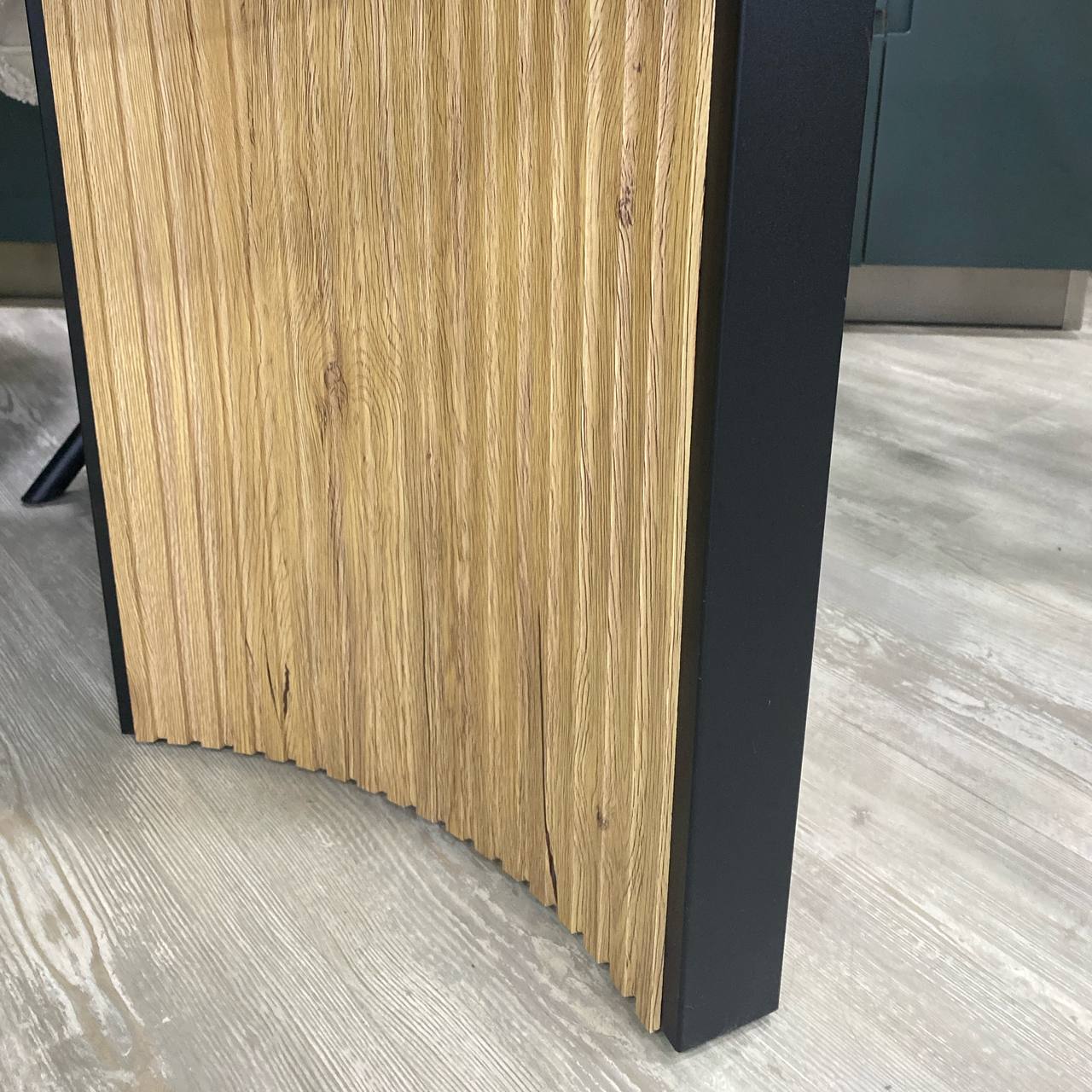 Редкой красоты подстолье в форме треугольника с вогнутыми сторонами – самая яркая деталь в столе. Опора из металла с декором под рельефное дерево очень прочна и устойчива и очень красива.