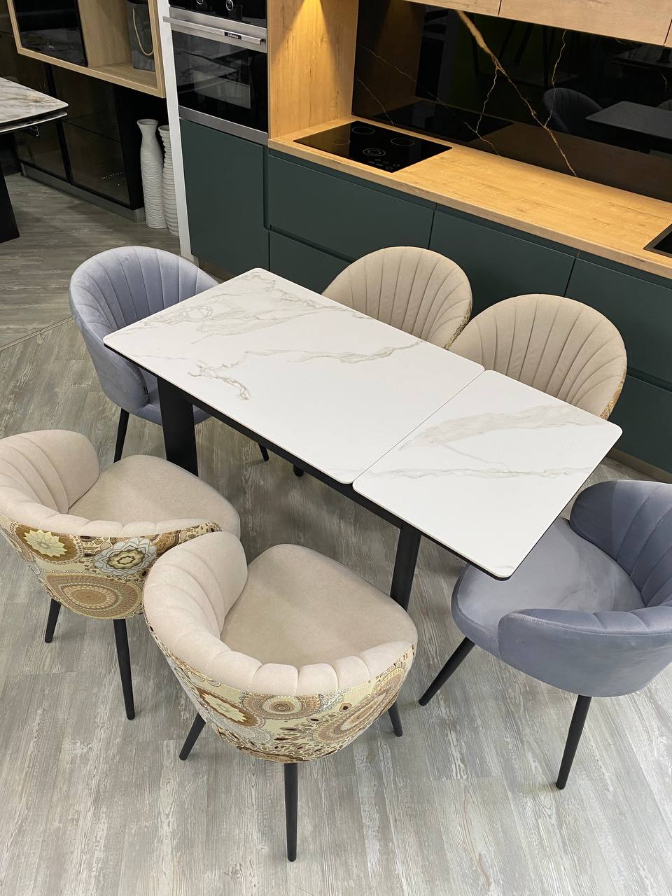 Стол Тет-а-тет изготавливается только в матовой керамике трех цветов: белый, серый или черный мрамор.