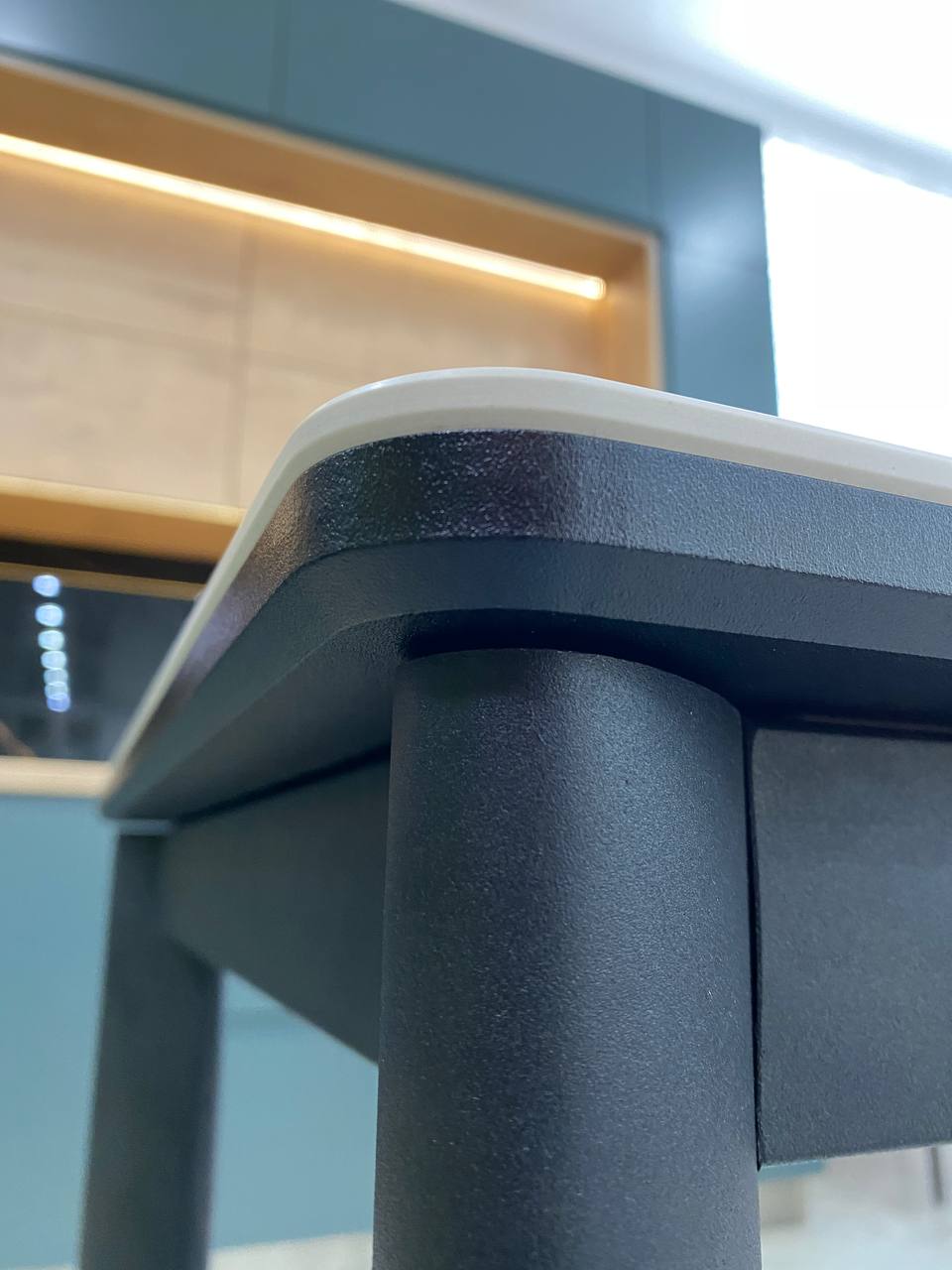 Ножки стола сделаны из металлической трубы овальной формы, без острого ребра.